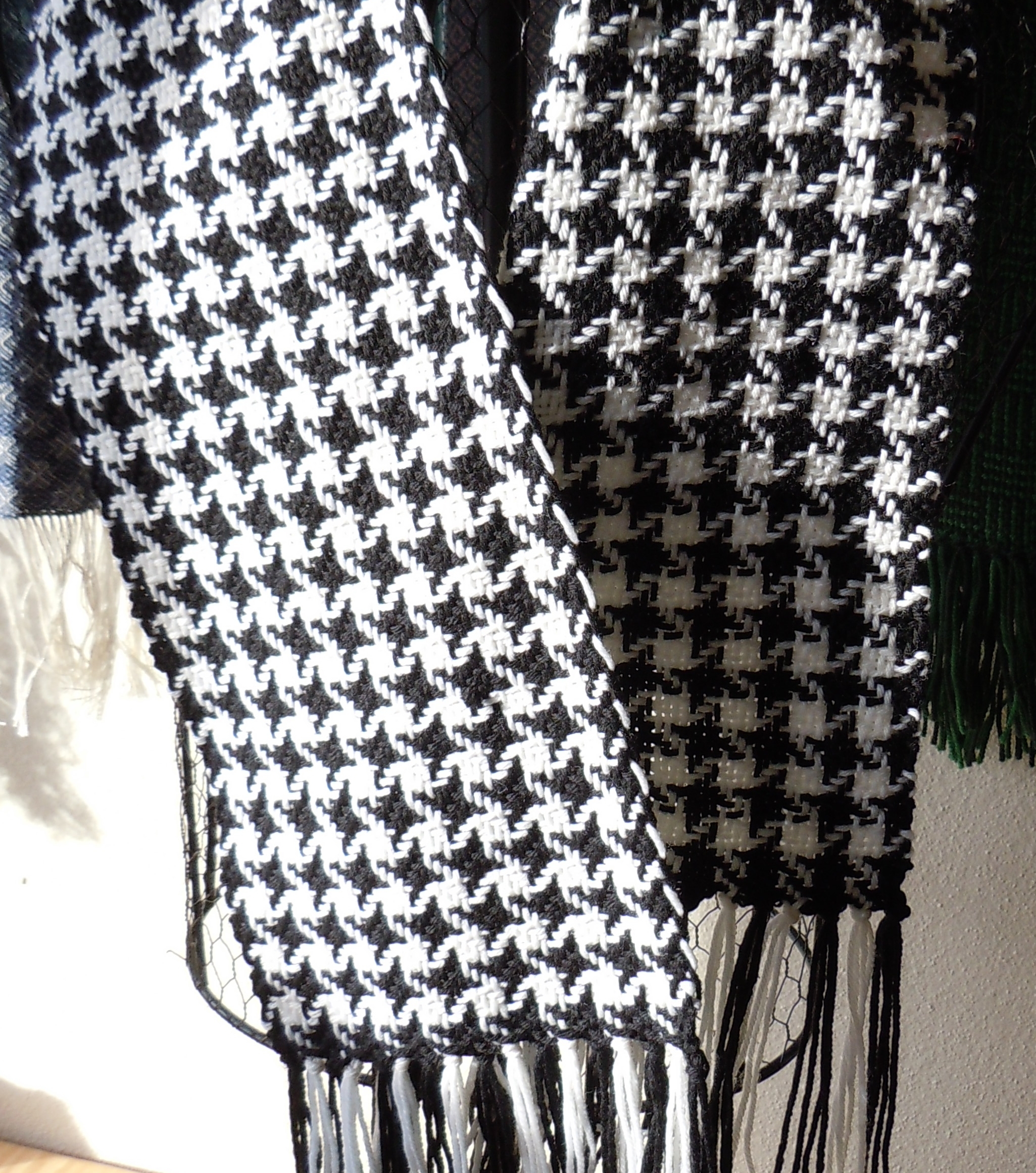 Houndstooth Muffler. This warm wool muffler, or scarf, gets its interesting look mainly from the way the colors interact when woven; this is an example of what is called color-and-weave. You will need to choose one light color and one dark color for the project.