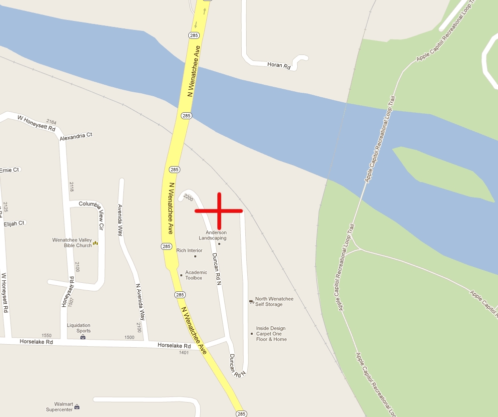 The weaving classroom is located at 2201 North Duncan Road. The red X on the map shows the approximate location.